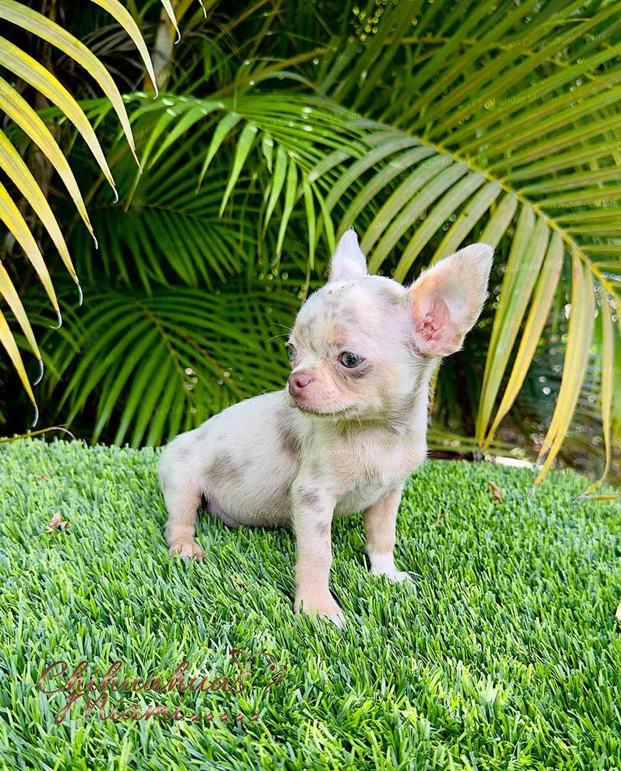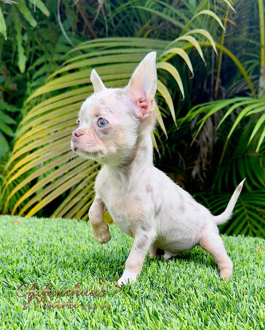 Ash is the perfect example of an exclusive Lilac Merle Chihuahua, ready to bring love and elegance into his new home.