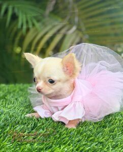 Nala is a micro long hair Chihuahua, delicate and full of charm. With her soft cream coat and expressive eyes, she looks like she came straight out of a fairytale. So tiny she rests perfectly in your hand, yet she has a heart full of sweetness and love to share.