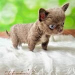 I’m a teacup long-haired Chihuahua boy in a gorgeous solid lilac color, with the most captivating blue eyes. My coat is a beautiful butterfly coat, soft and flowing, that makes me look even more delicate and unique.