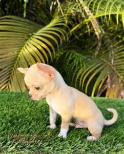 Vito is a gorgeous teacup Chihuahua who literally fits in the palm of your hand. He’s incredibly affectionate and loves belly rubs more than anything. Whether he’s playing or following you around, he’s always happy just to be close. Vito is also gentle with other dogs and even kittens, making him the sweetest little companion.